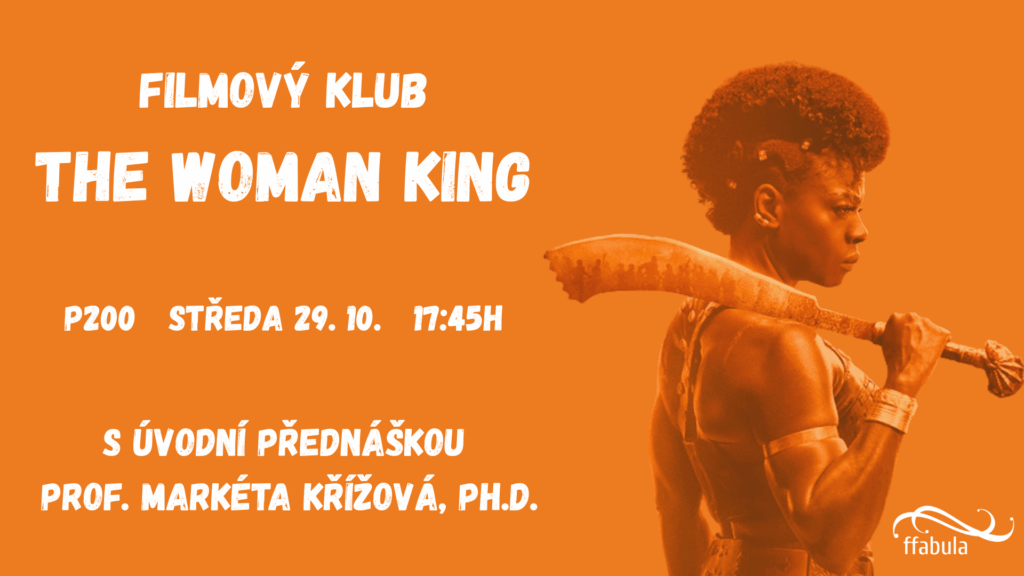 Dovolujeme si Vás pozvat na říjnový filmový klub, na kterém si společně pustíme The Woman King. Úvodní přednášku k filmu bude mít Prof. Markéta Křížová Ph.D.