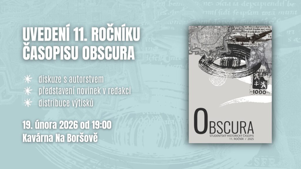 Srdečně vás zveme na uvedení nového, v pořadí již 11. ročníku studentského časopisu Obscura, které proběhne 19. února 2026 od 19:00 v kavárně Na Boršově.